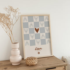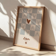 Affiche prénom - Damier bleu