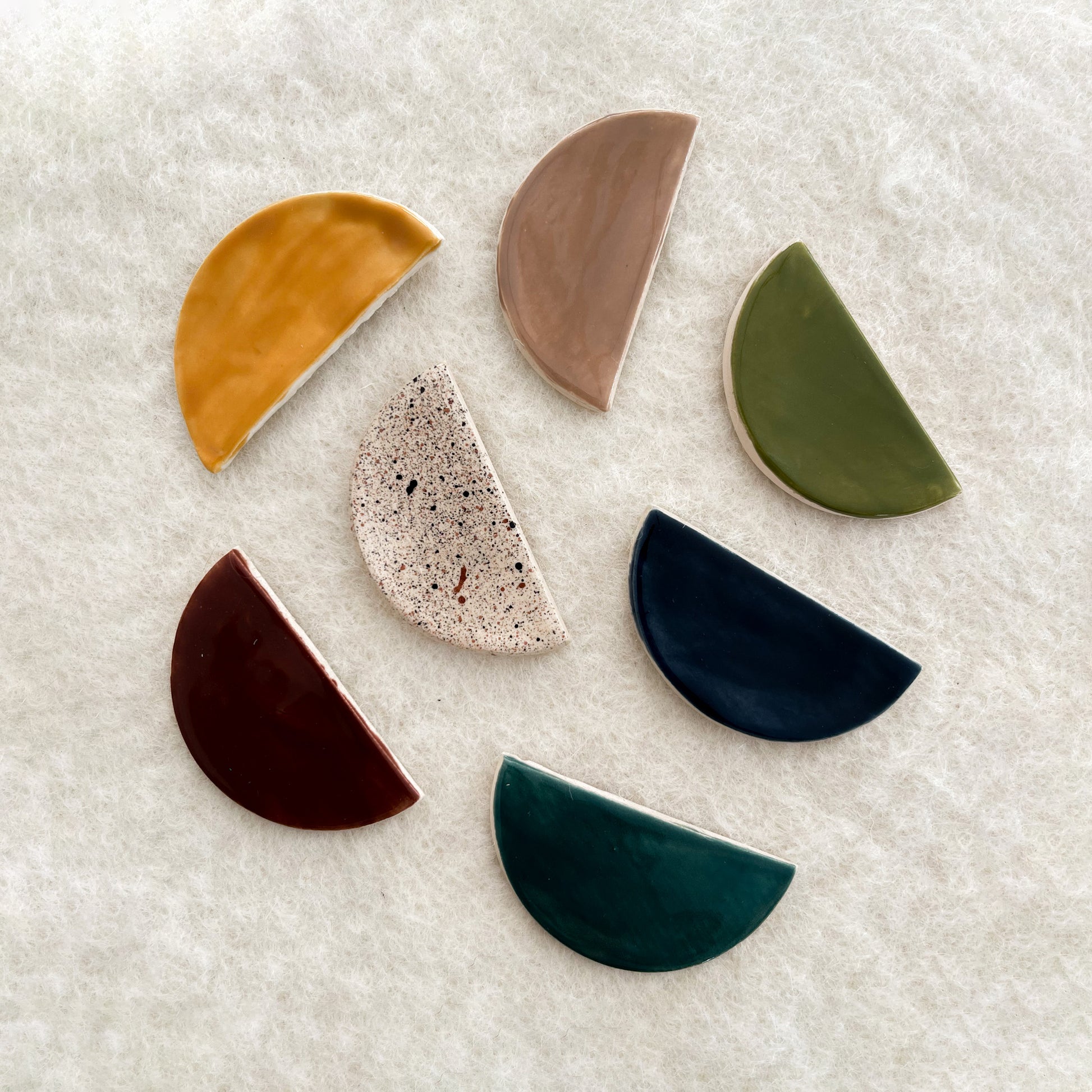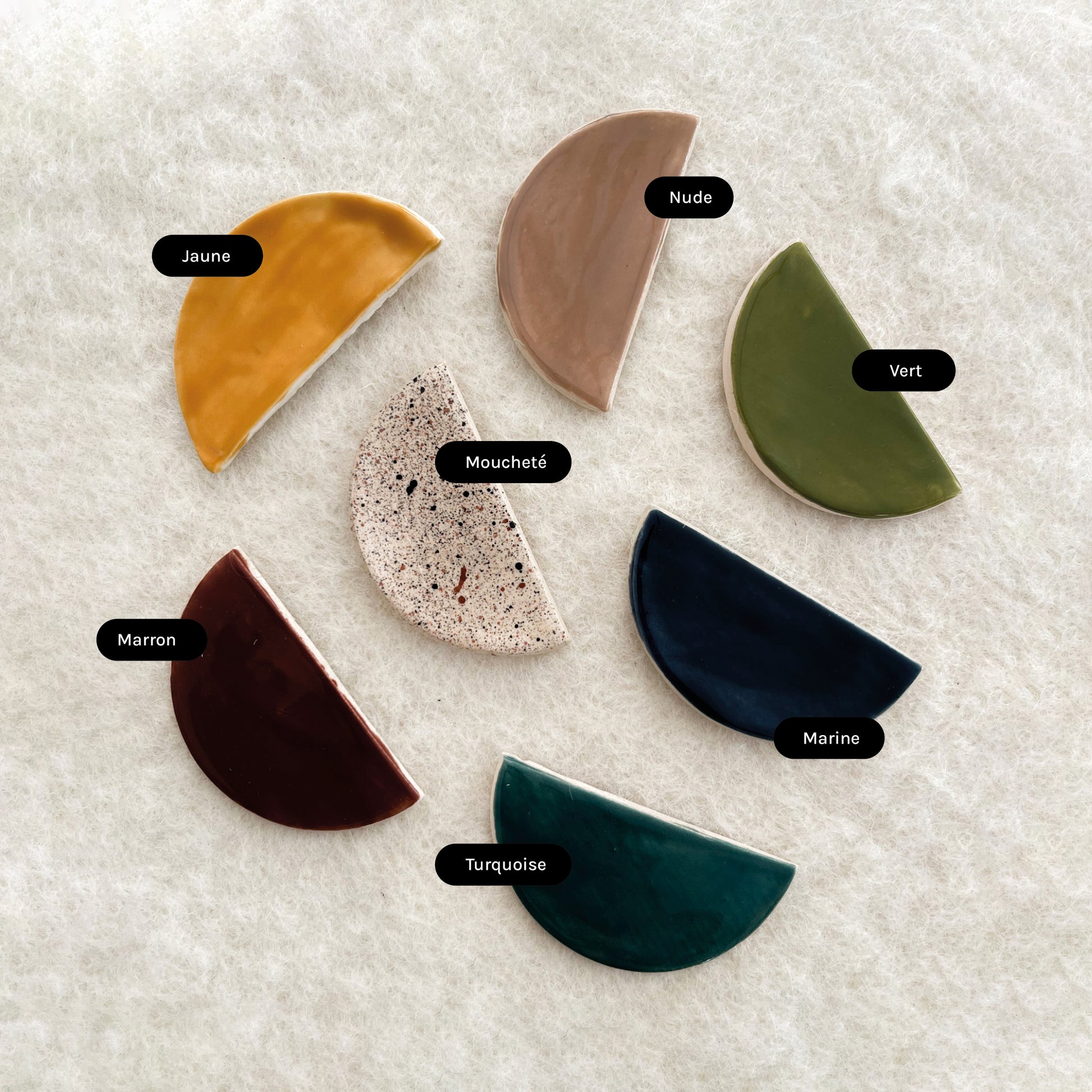 Fonctionne avec 2 parties aimantées : l'une se fixe sur un mur, une vitre, un miroir... grâce à une pastille adhésive double-face, l'autre, en céramique, se fixe à l'aimant ensuite !