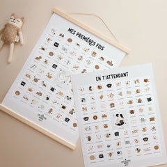 Quel que soit le modèle d'affiche "Mes premières fois" choisi, le contenu reste le même. Les illustrations et leur disposition varient selon le style de l’affiche.