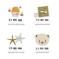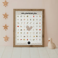 Il y les premières fois qu’on n’oublie pas comme les premiers pas, le premier mot… et il y a toutes les autres ! Qui se rappelle de la date de son premier bobo, de son premier brossage de dent, de sa première bêtise… ? Entre le "premier jour sur terre" et "mon premier trajet en avion"... L’affiche comprend 61 premières fois pour accompagner la vie d’un enfant de 0 à 7 ans ou plus !