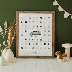 Quel que soit le modèle d'affiche "Mes premières fois" choisi, le contenu reste le même. Les illustrations et leur disposition varient selon le style de l’affiche.