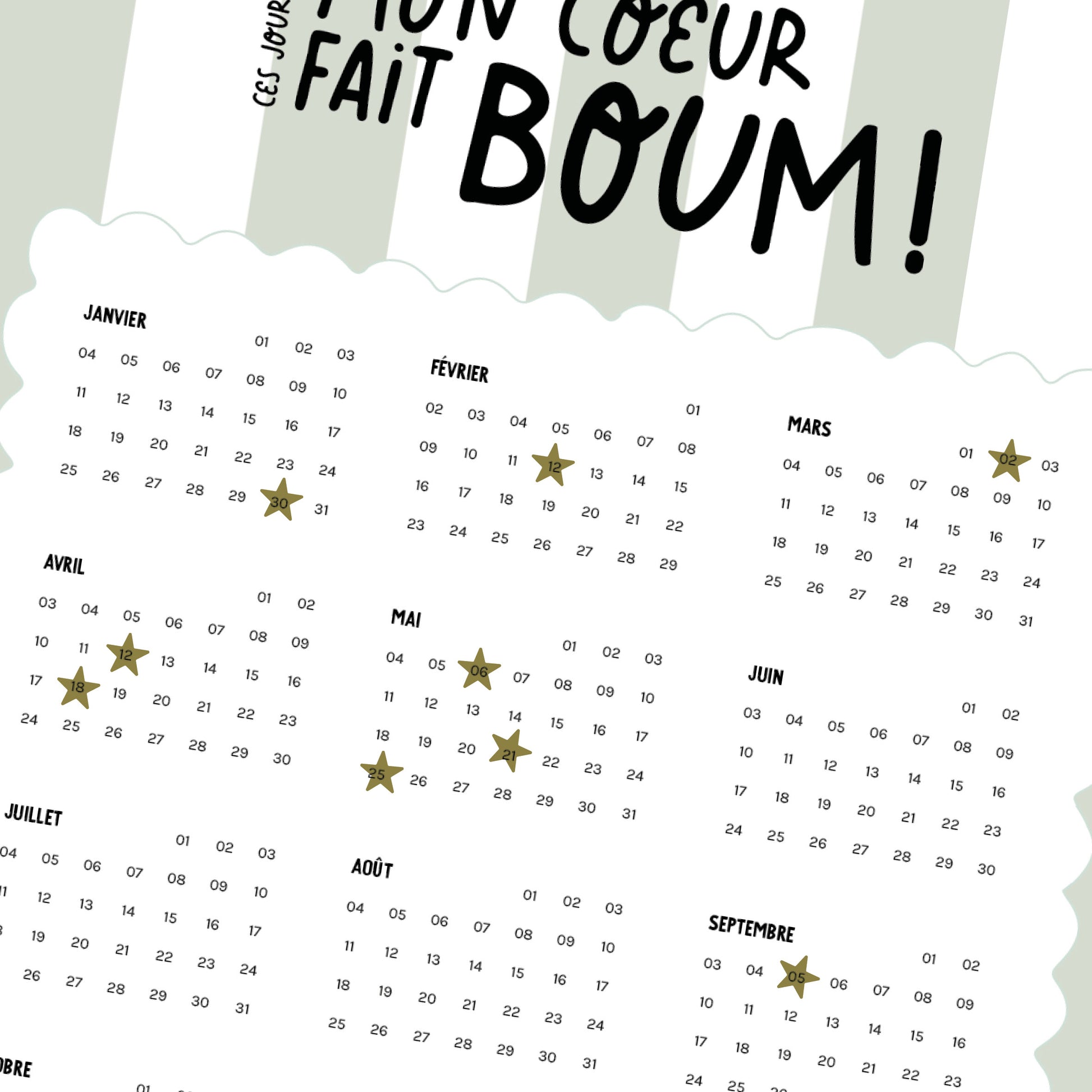 Ces jours où mon cœur fait boum arrive avec son petit étoile pour dater les moments qui font vibrer l’année : anniversaires, rencontres, grands oui, petites victoires…