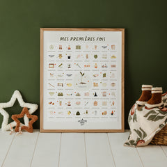 Entre le "premier jour sur terre" et "mon premier trajet en avion"... L’affiche comprend 61 premières fois pour accompagner la vie d’un enfant de 0 à 7 ans ou plus !