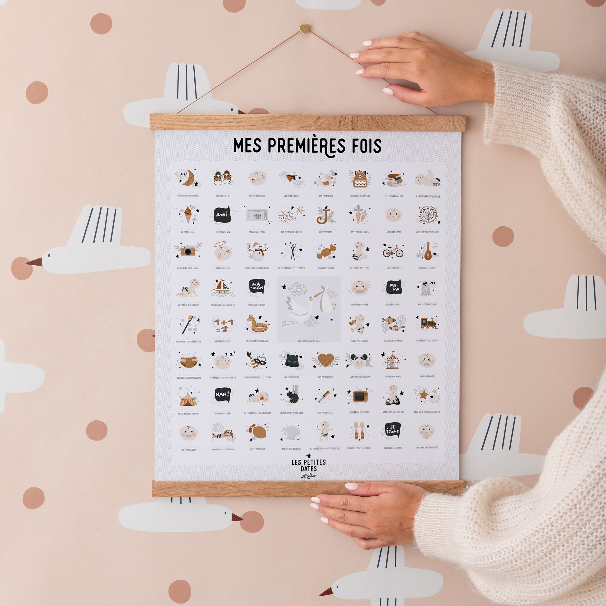 Entre le "premier jour sur terre" et "mon premier trajet en avion"... L’affiche comprend 61 premières fois pour accompagner la vie d’un enfant de 0 à 7 ans ou plus !