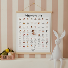 Todas las pequeñas fechas destacadas de los primeros años de un(a) niño(a) en un póster: mi primer "mamá", mi primera noche de un tirón, mi primera pupa... 61 primeras veces a fechar para no olvidar esos hermosos momentos.